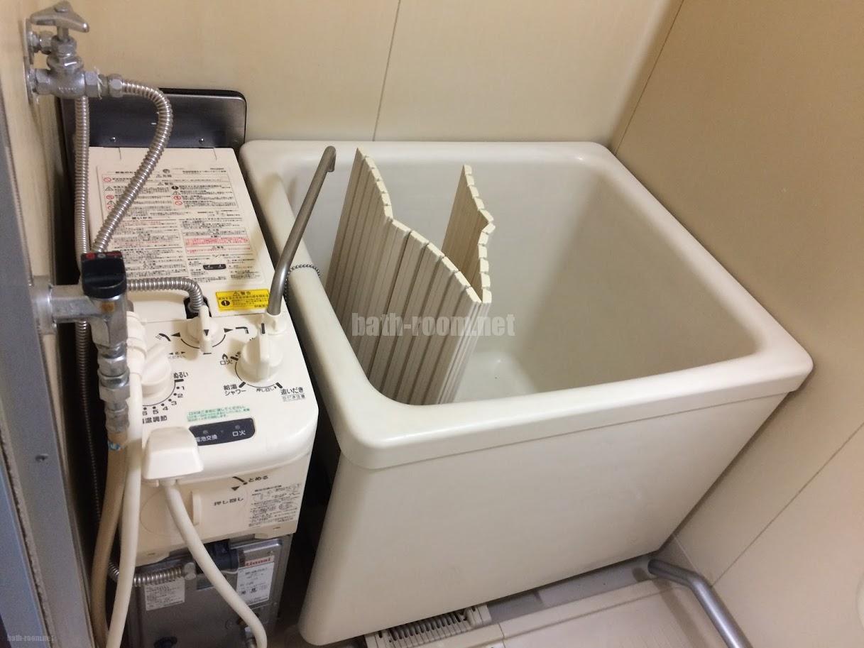 リフォーム前の浴室です。このようなバランス釜の場合はリフォームの際に給湯器を交換する必要があります。