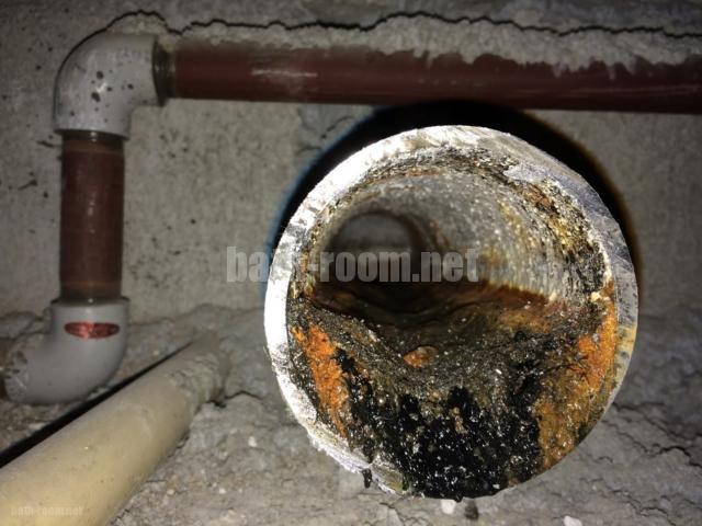 鉄管の内部です。このように長年の汚れが貯まっていくとやがて流れなくなってしまいます。