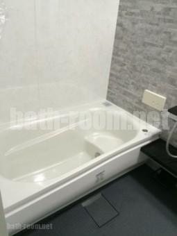 組立完了です。体の形に合わせた入りやすいデザインが特徴の浴槽です。以前のものと比べると浴槽のまたぎ高さがかなり低くなっているのがわかります。