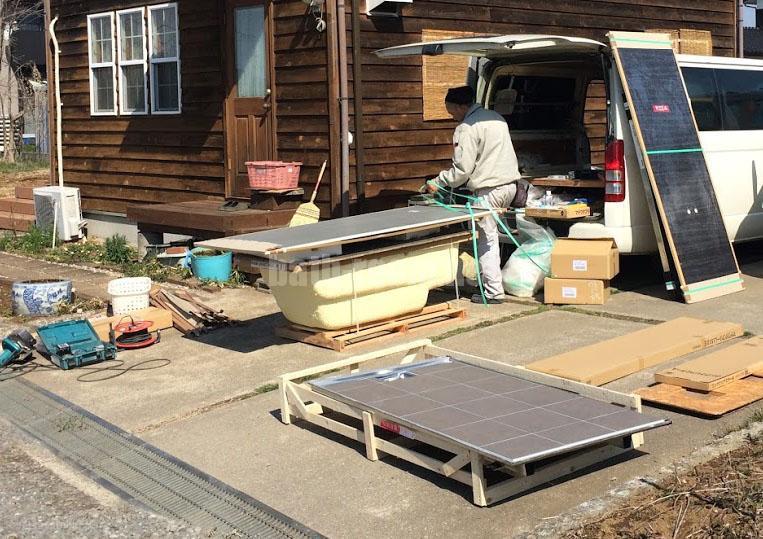 搬入状況です。部材点数が多いため敷地をお借りしました。