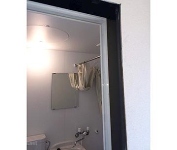 新しいユニットバスを組み立てたところです。まだ入り口の枠回りは仕上がっていません。