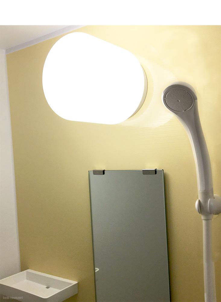 シャワー&パウダーの間仕切りは折戸になっています。換気扇は2室用が標準仕様です。
