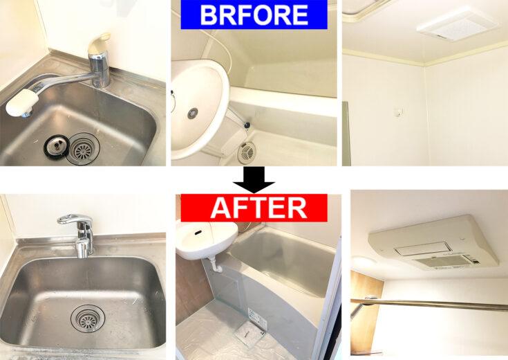 東京都品川区ラ・カーサ・マルタカでパナソニックAWE UWⅡ ホテルライクユニットバスを使用した浴室リフォーム工事を行いました。3点ユニットから2点ユニットへの交換です。同時にミニキッチンの水栓交換も承りました。