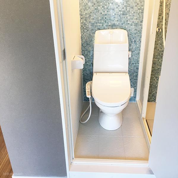 施工後のシャワー&パウダーのトイレ側をドアを開けて見たところです。